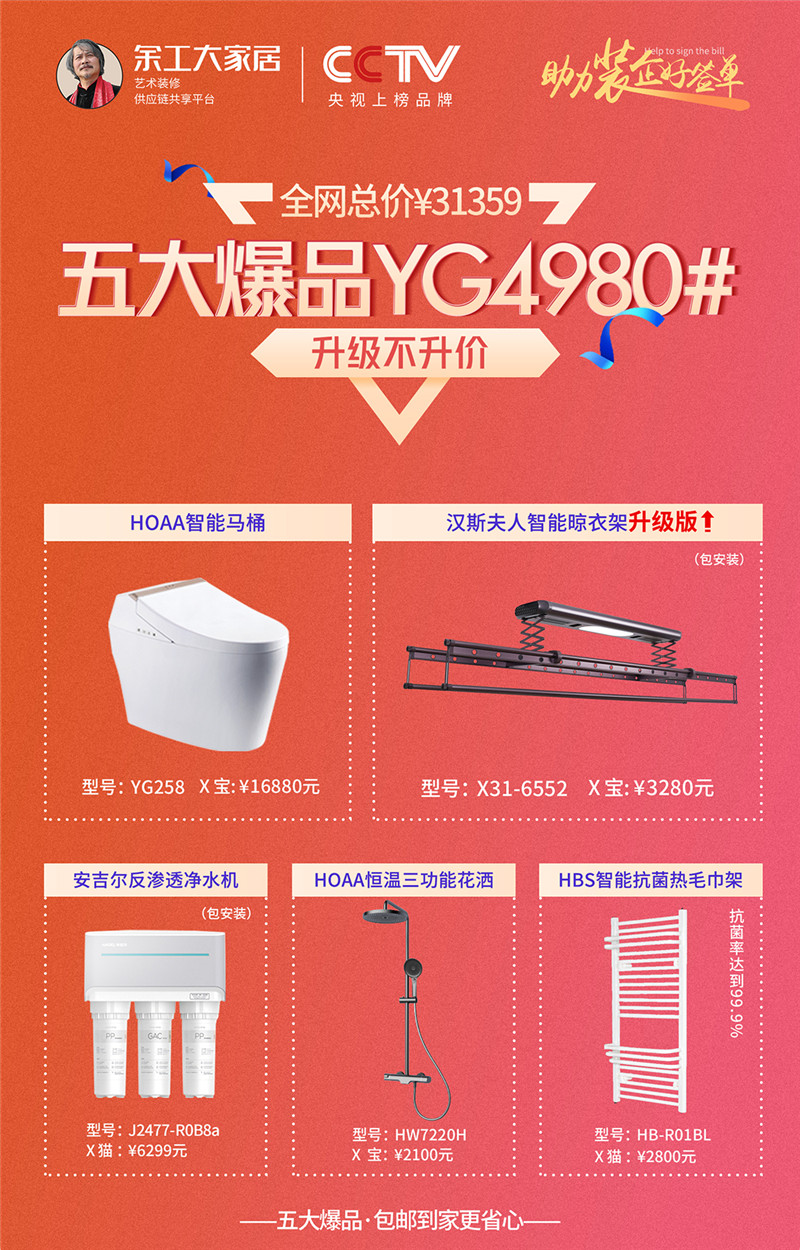 余工大家居五大爆品YG4980,業(yè)主剛需超值五件套,口碑極好!助力全國(guó)各裝企315開門紅活動(dòng),讓裝企更輕松簽單!