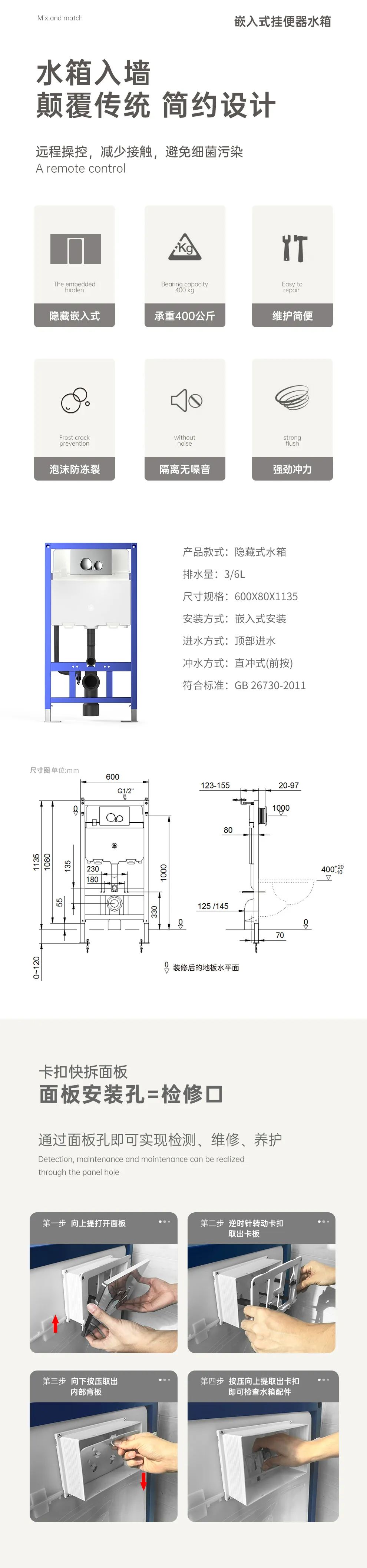 壁掛隱藏式馬桶可以方便清潔衛(wèi)生,不管是人工還是使用掃地機(jī)器人都可輕松通過(guò)。