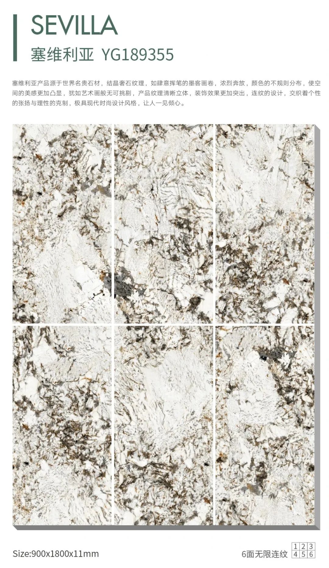 塞維利亞產(chǎn)品源于世界名貴石材,結(jié)晶奢石紋理,如肆意揮筆的墨客畫卷,濃烈奔放,顏色的不規(guī)則分布,使空間的美感更加凸顯,猶如藝術(shù)畫般無可挑剔,產(chǎn)品紋理清晰立體,裝飾效果更加突出,連紋的設(shè)計(jì),交織著個(gè)性的張揚(yáng)與理性的克制,極具現(xiàn)代時(shí)尚設(shè)計(jì)風(fēng)格,讓人一見傾心。