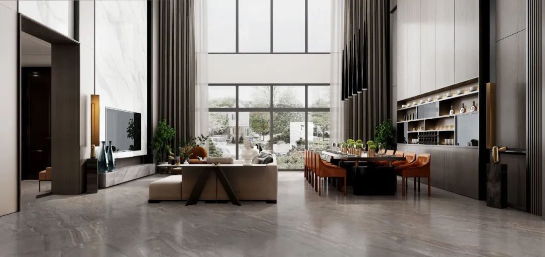 ,多重工藝多面呈現(xiàn),墻地一體渾然天成,黃金比例 大宅專屬