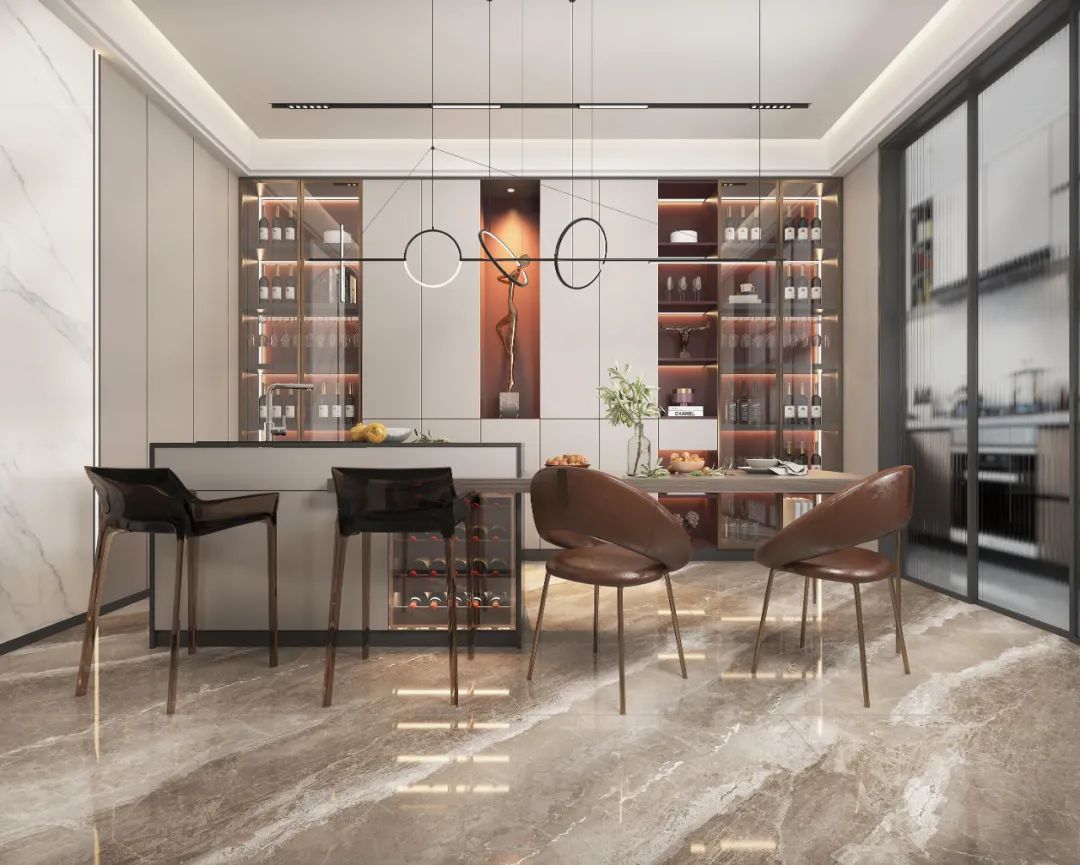 阿波羅灰設(shè)計(jì)靈感來源于浩瀚無垠的太空星云層、夜空閃耀的雷電以及冰川上的裂變,將以上幾者元素與傳統(tǒng)巖石的厚重感相結(jié)合,細(xì)膩多變的紋理,配合下陷釉工藝的加持,令表面手感更加細(xì)膩、立體感十足,亮光全拋令其產(chǎn)品更加通透,裝飾效果更加出眾,產(chǎn)品顏色高貴典雅,令空間氛圍營造時(shí)尚前衛(wèi)的生活氣息。